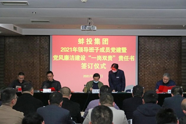 會(huì )議總結了蚌投集團2020年度工作完成情況,部署了2021年度重點(diǎn)工作。中創(chuàng )發(fā)展、能源集團、擔保集團、蚌發(fā)公司、項目管理5家子公司負責人分別進(jìn)行2020年度述職述責述廉。會(huì )議部署了2021年度集團黨建暨黨風(fēng)廉潔建設工作,啟動(dòng)了新一輪深化“三個(gè)以案”警示教育。汪支邊同志與集團黨委班子成員簽訂2021年度“一崗雙責”責任書(shū),并與子公司代表簽訂2021年度黨建暨黨風(fēng)廉潔建設、經(jīng)營(yíng)目標、安全生產(chǎn)、環(huán)境保護、平安建設(綜治工作)目標責任書(shū)。